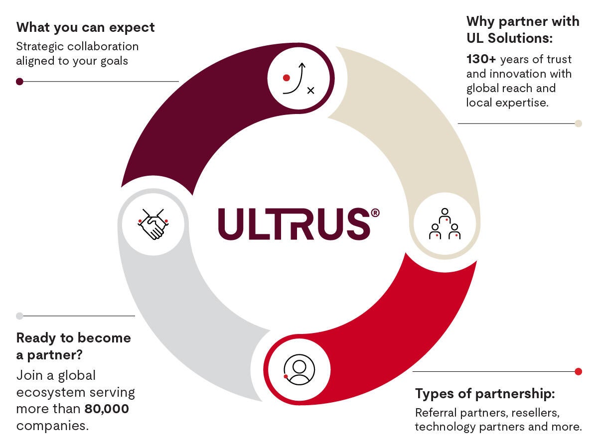 At UL Solutions, we believe the best outcomes come from collaboration. Our ULTRUS® Software Partner Program is built for companies and individuals who want to innovate, expand their reach and deliver more value to their customers — with the support of a recognized global safety science leader.