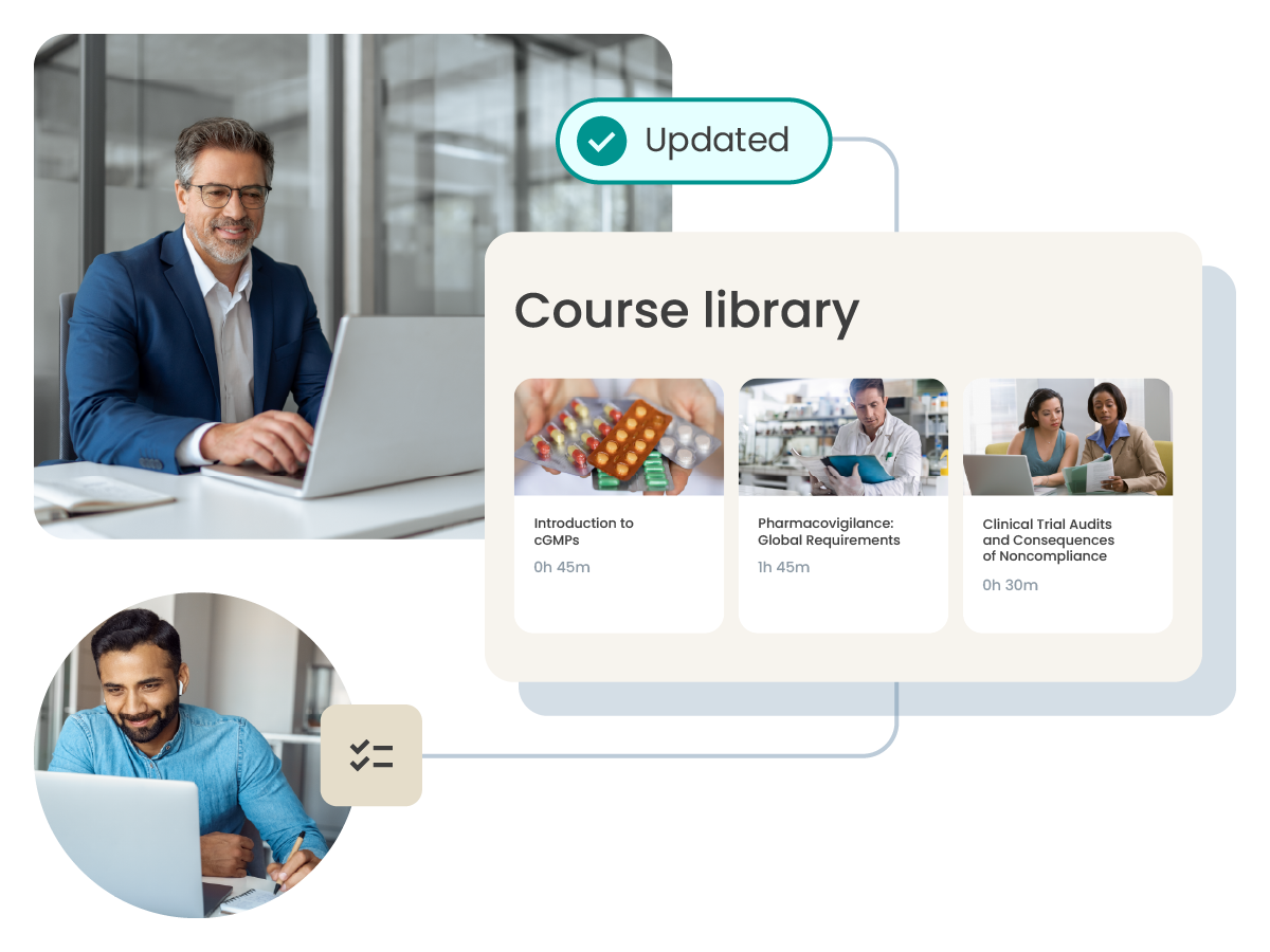 Drive engaging, informative e-learning content across your teams, customized by industry and role. Elevate training beyond standard operating procedures (SOPs) to drive better quality outcomes, leveraging our catalog of over 400 regulatory and performance-focused courses delivered in multiple languages.